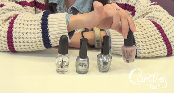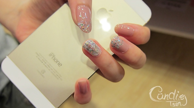 3.選四支做亮片漸層, 將大亮片由中間往指尖擦即可