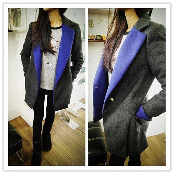 這件深灰撞寶藍的外套怎麼這麼好看!!